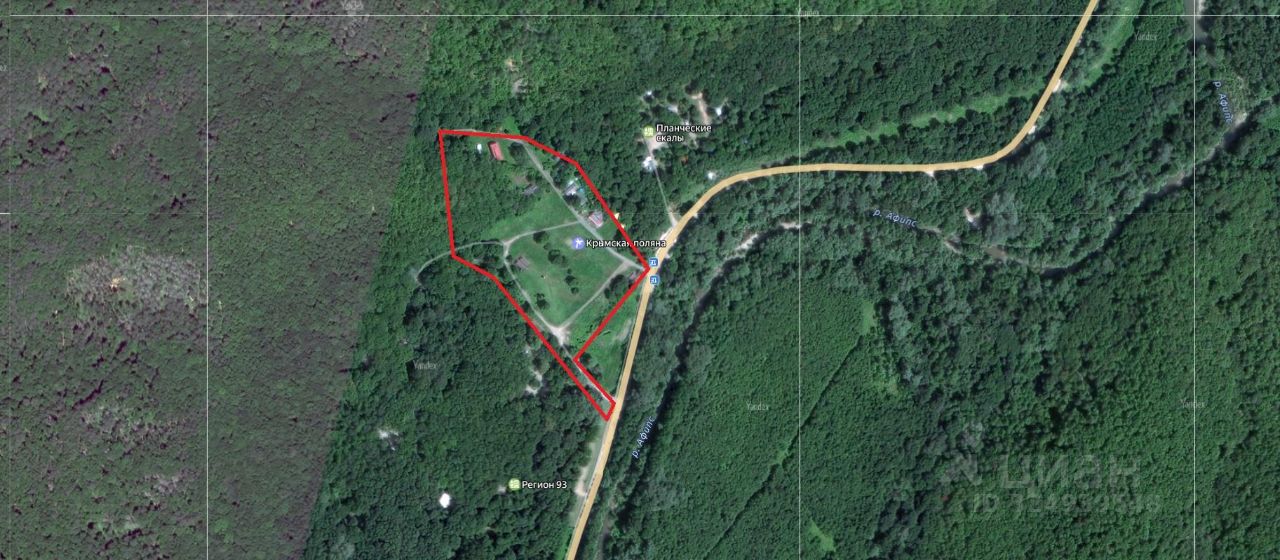 Данный объект расположен в горной местности рядом с рекой Афипс и лесом, множество туристических троп и геологических достопримечательностей, подходит для рекреационного развития. Территория базы ровная без перепада высоты, подъездная дорога - асфальт.