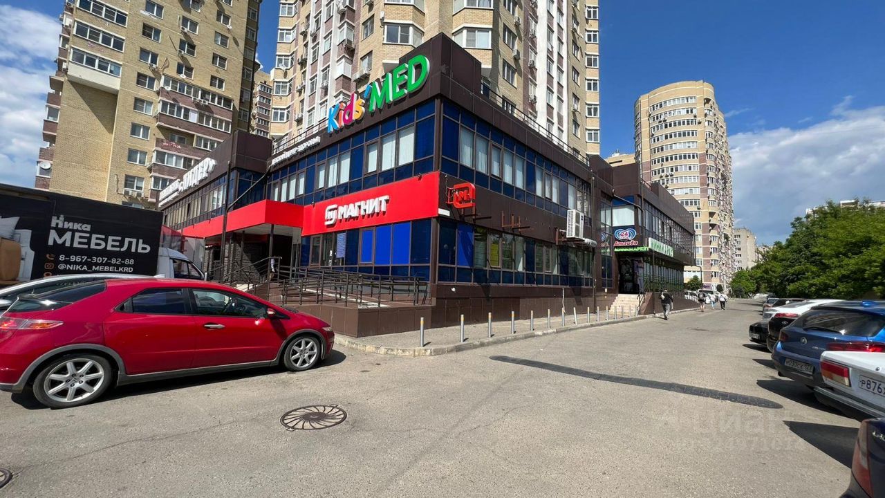 Рядом расположены сетевые арендаторы: Магазин "Магнит", школа "Лидер", клиника "Kids'MED" и т.д.