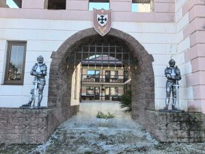 Гостиница выполнена в средневековом рыцарском стиле.