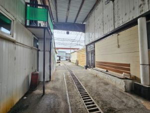 Здание цеха ориентировочной площадью около 800кв.м. из легковозводимых металлических конструкций на базе советского бетонного здания автоколонны. Высокие потолки, второй свет и настильный пол позволили создать полноценный производственный цех на две линии (металл и дерево) в два этажа.