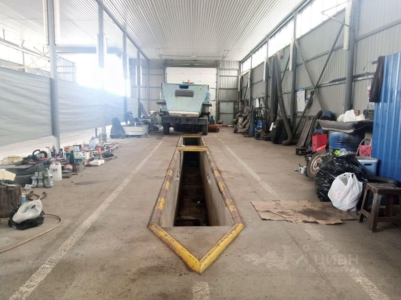 В здании есть яма для обслуживания автотранспорта. Участок полностью забетонирован, и огорожен.