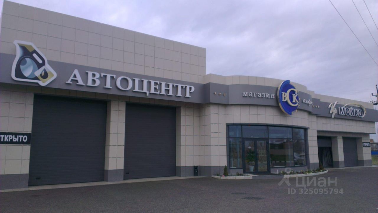 Здание разделено на 3 части: СТО, Автомойка и Магазин/Кафе. Асфальтированная парковка перед зданием.