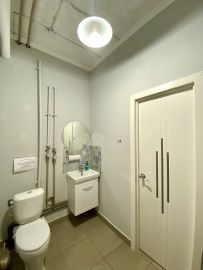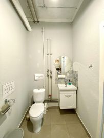 Помещение с ремонтом - плитка на полу, декоративная штукатурка на стенах, установлены унитаз и раковина. Центральное водоснабжение и отопление, отдельные счётчики, вентиляция.
