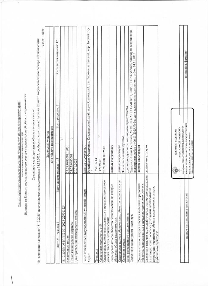 Земельный участок, расположенный по адресу: Российская Федерация, Краснодарский край, Славянский муниципальный район, Рисовое сельское поселение, п. Рисовый, пер. Озерный, земельный участок 16