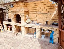 На территории есть своя парковка на 10 машин, детская площадка, каркасный бассейн, беседки, летняя кухня, много плодовых деревьев (Оазис счастья), цветы, 2 выхода на реку и на Центральную улицу к магазинам.