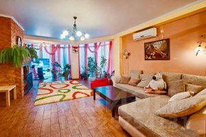 Гостевой дом состоит из основного корпуса: 2 и 3 этаж - 10 номеров (В каждом с/у и душ), 1 этаж хозяйский - 3 комнаты и 2 с/у, кухня-столовая, гостиная, ресепшн, ещё есть мансарда (Пока так и не придумали, что на ней сделать...) - итого 450 м2 и коттеджа 118 м2 с русской баней на дровах на 1 этаже, купелью и бильярдом, а также тремя номерами на 2 этаже. В коттедже 4 санузла.
