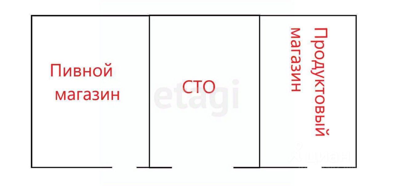 В здании три отдела которые заняты арендаторами: пивной магазин, СТО, продуктовый магазин.
