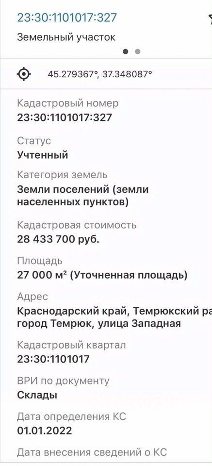 Продам право аренды на земельный участок 2,7 га промназначения.