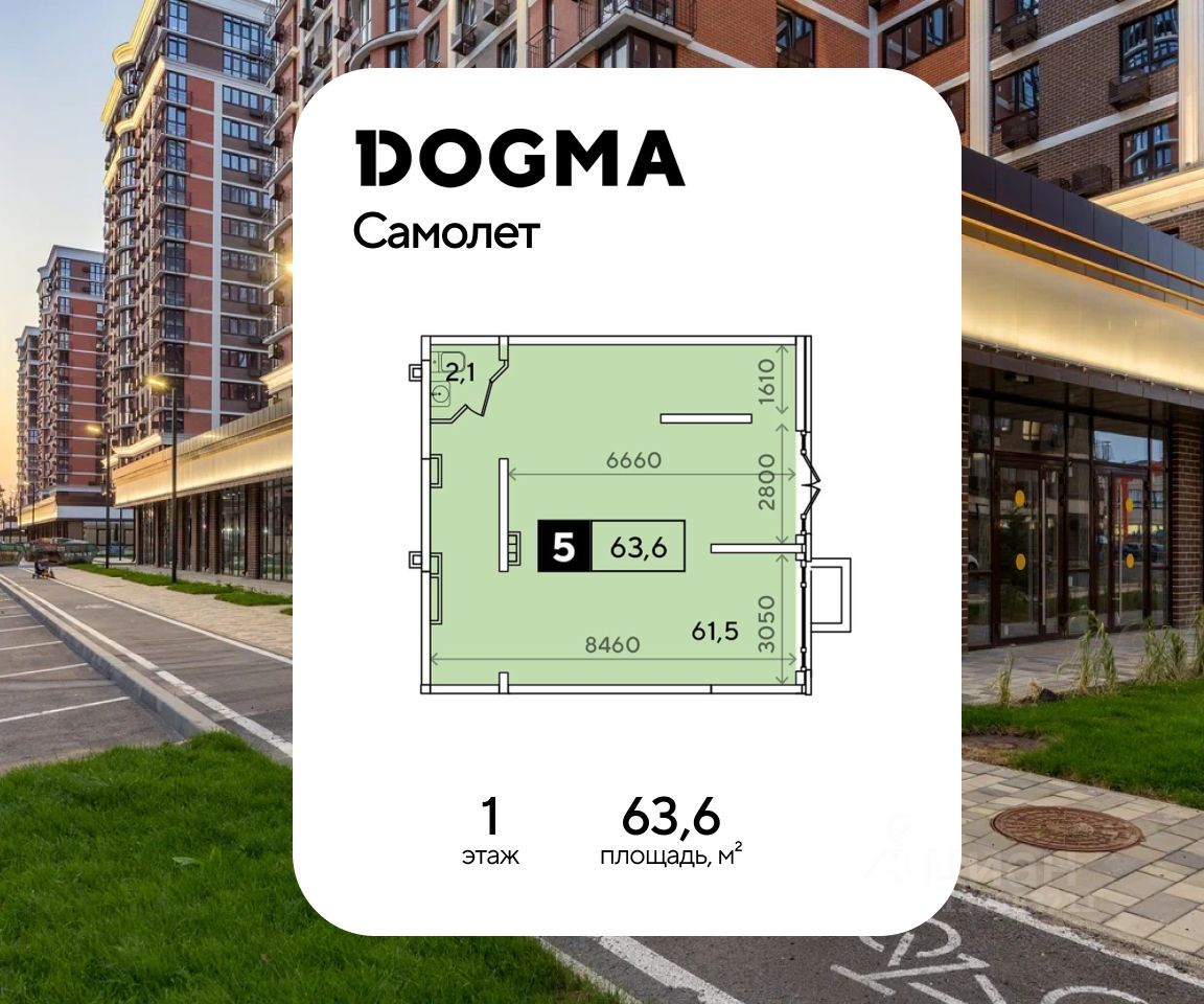 В реализации — коммерческие помещения свободного назначения в литере 29 общей площадью 63.60 кв.м. на 1 этаже в микрорайоне "Самолёт" от застройщика DOGMA, одного из ведущих девелоперов Краснодарского края.