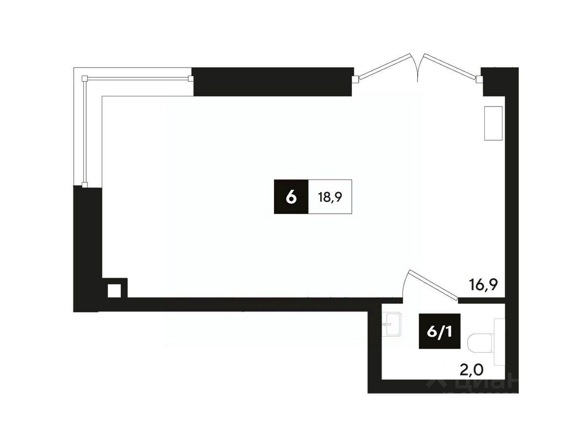 В реализации — коммерческие помещения свободного назначения в литере 4 общей площадью 18.9 кв.м. на 1