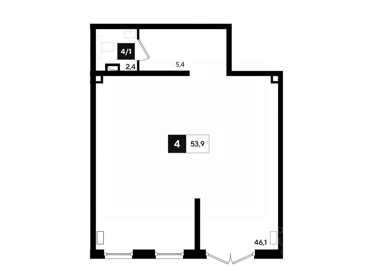 В реализации — коммерческие помещения свободного назначения в литере 6 общей площадью 54.1 кв.м. на 1