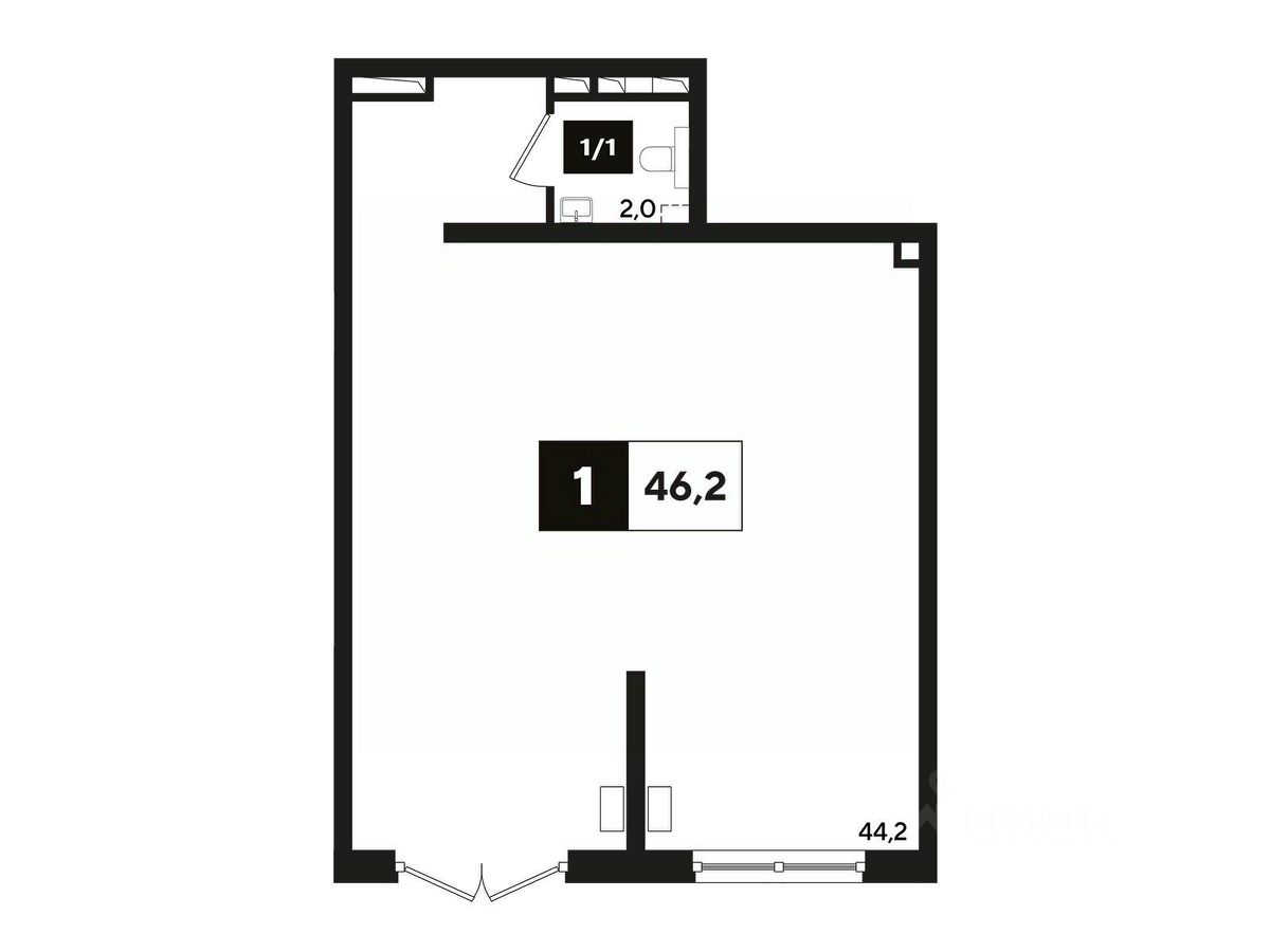 В реализации — коммерческие помещения свободного назначения в литере 7 общей площадью 46.5 кв.м. на 1