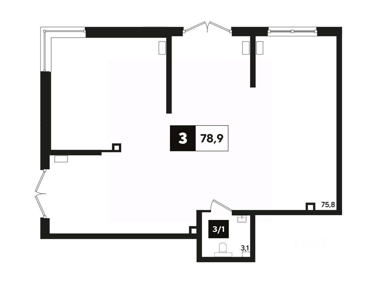 В реализации — коммерческие помещения свободного назначения в литере 7 общей площадью 79.9 кв.м. на 1