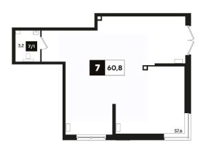 В реализации — коммерческие помещения свободного назначения в литере 7 общей площадью 61.1 кв.м. на 1