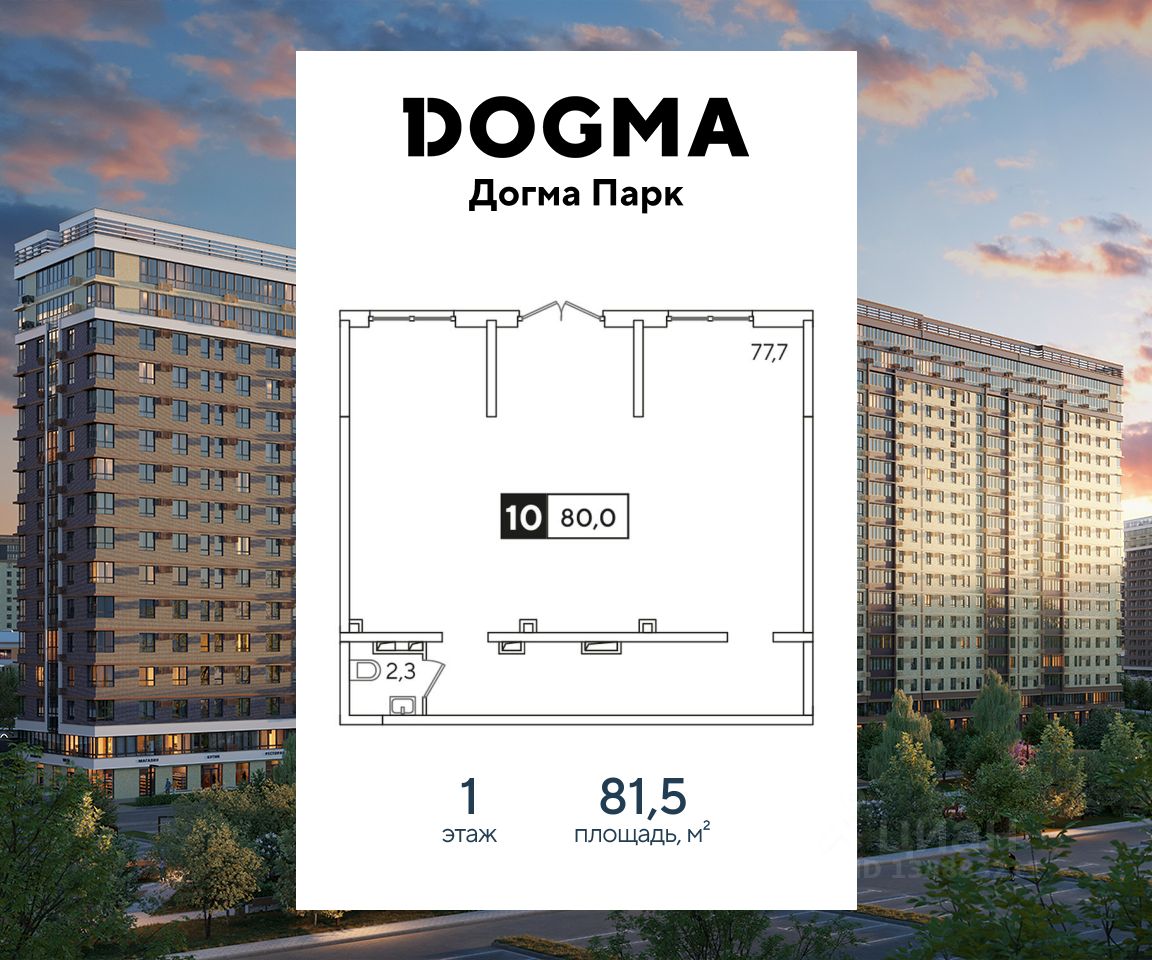 В реализации — коммерческие помещения свободного назначения в литере 15 общей площадью 81.50 кв.м. на 1 этаже в микрорайоне "ДОГМА ПАРК" от застройщика DOGMA, одного из ведущих девелоперов Краснодарского края.
