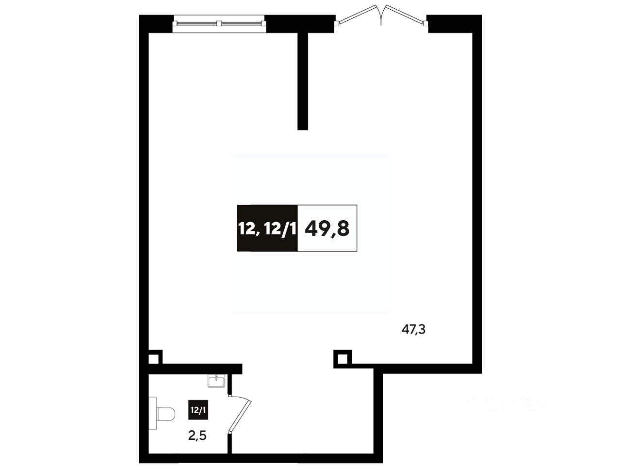 В реализации — коммерческие помещения свободного назначения в литере 17 общей площадью 50.4 кв.м. на 1