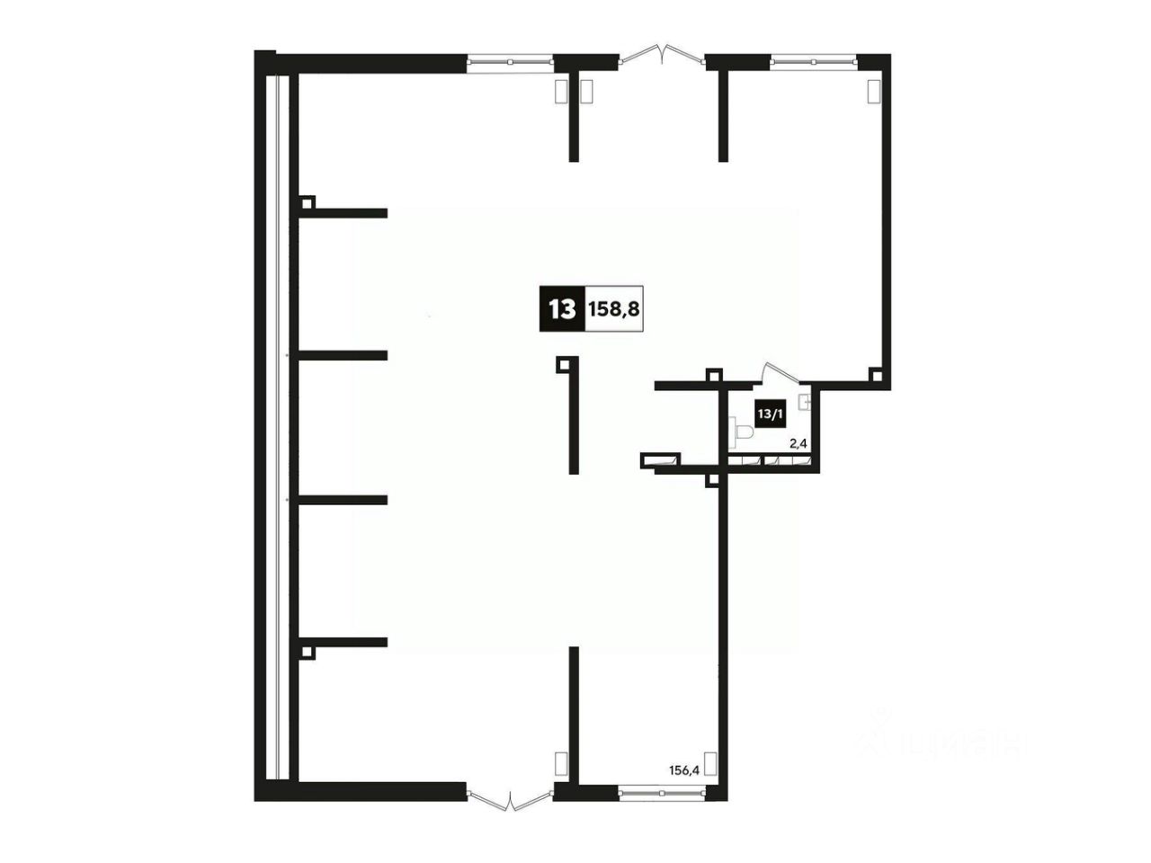 В реализации — коммерческие помещения свободного назначения в литере 2 общей площадью 159.9 кв.м. на 1