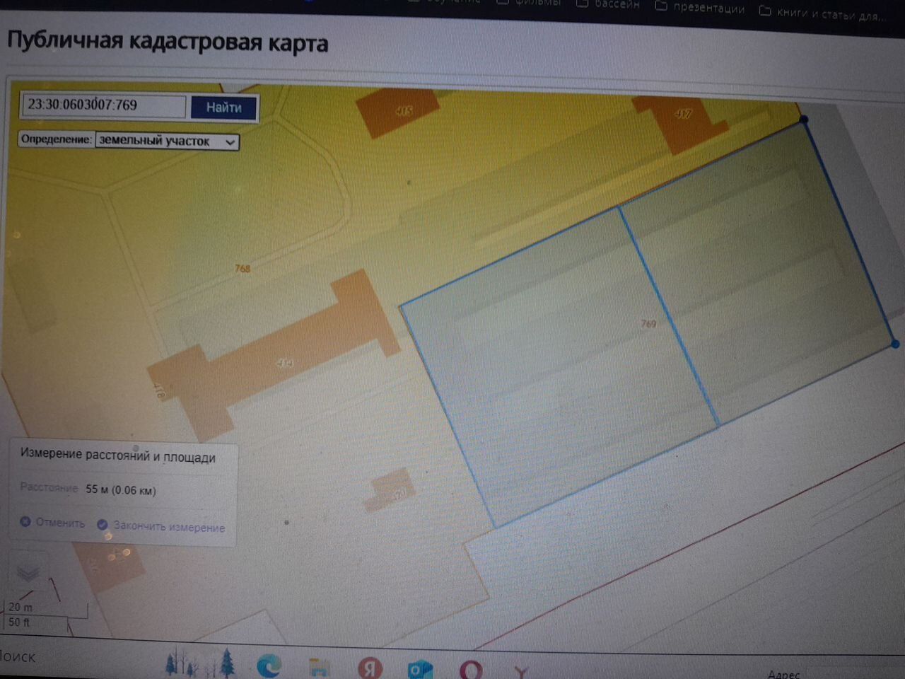 Размеры сторон участка примерно 45 м на 55 м.