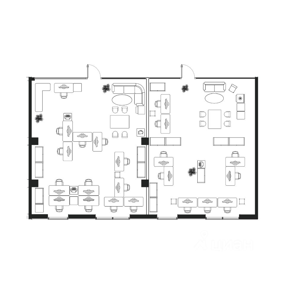 Распределение мест зависит от параметров офисных помещений.