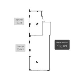 Помещения передаются с базовой отделкой без офисной мебели: инженерные выводы, электрика под офисную нагрузку, офисное освещение, подключения для интернета и связи. Формат позволяет начинать эксплуатацию без черновых работ и адаптировать офис под задачи бизнеса.