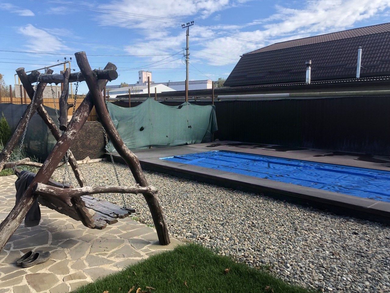Бассейн размером 3 м на 7 м, глубина 1,5 м. Бассейн можно подогревать печным отоплением, возможность подвести газ есть.