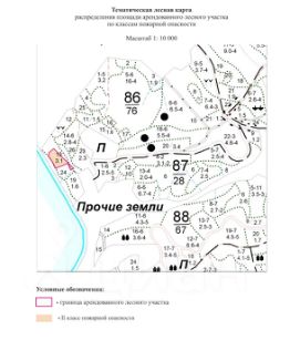 Имеется план земельного участка и проект освоения лесов с расположением деревьев по лесотаксационной ведомости и материалам лесоустройства.