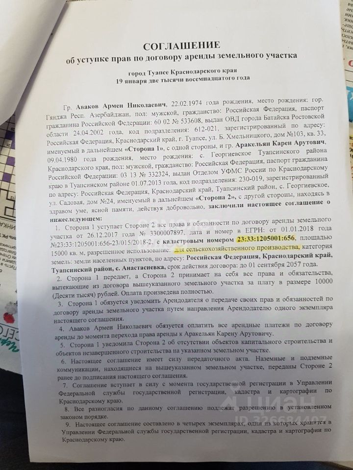 Продаётся переуступка прав на участок 1,5 га в п. Анастасиевка Туапсинского района.