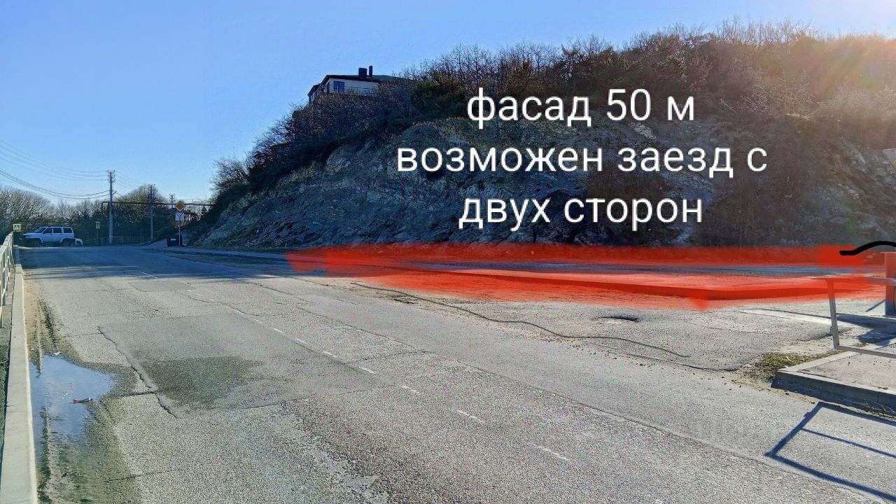 Участок расположен в Мысхако вдоль оживленной трассы и элитной застройки.