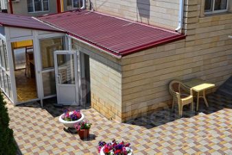 На территории гостиницы есть хорошая безопасная детская площадка, зона с шезлонгами, водопад, беседки крытые и открытые столи для чаепития. А так же на территории находиться крытый бассейн 100 м² с подогревом и душевой кабиной. Имеется своя стоянка для авто. Своя подстанция Продаю полностью со всем оборудованием, мебелью и наработанными постоянными отдыхающими.