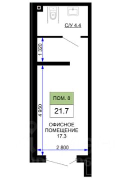 Площадь помещения составляет 22,3 м2. Вход в помещение отдельный и без ступенек и пандусов.