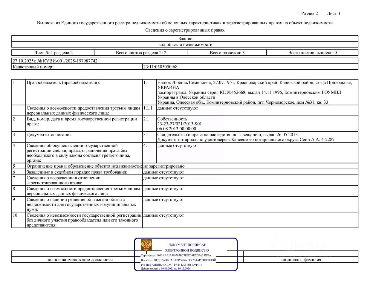 Д-к: Надюк Л.С. Земельный участок (для ведения личного подсобного хозяйства), кадастровый номер 23:11:0505011:8, площадью 1700 кв.м., жилое здание, площадью 50,2 кв.м., кадастровый номер 23:11:0505050:68. Адрес: Краснодарский край, Каневской район, с/п Привольненское, ст. Привольная, ул. Прогонная 5. Границы земельного участка не установлены в соответствии с требованиями земельного законодательства. Начальная цена 2 278 505 руб., задаток 341 776 руб., шаг аукциона 22 786 руб., ув. 84