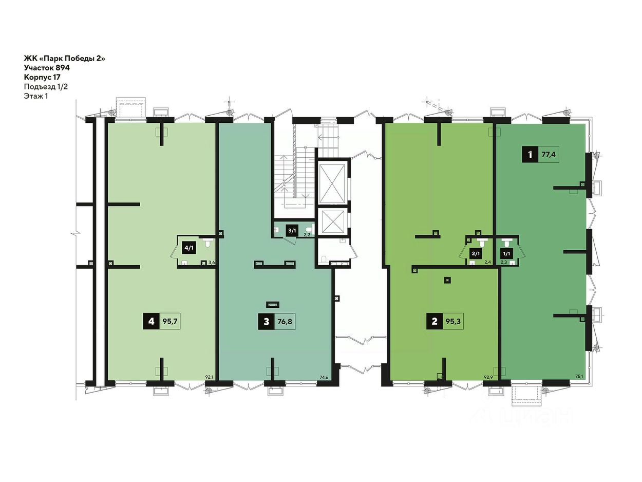 В реализации — коммерческие помещения свободного назначения в литере 16 общей площадью 96.50 кв.м. на 1 этаже в микрорайоне "Парк Победы" от застройщика DOGMA, одного из ведущих девелоперов Краснодарского края.