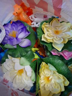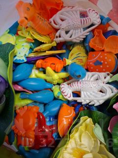 в комплекте:трос для закрытия аттракциона,подставки,ведерки,удочки,игрушки на магнитах для игры,кувшинки для украшения , три пластмассовых стула.Аттракцион разобран,готов к погрузке