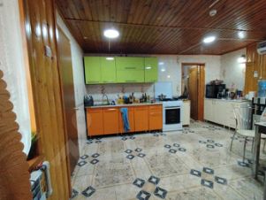 Главный дом общей площадью 124,5 кв.м. построен из керамзитового блока и облицован силикатным кирпичом.Дом предназначен для проживания большой семьи. В доме три изолированные спальни, гостиная с камином, прихожая, функциональная кухня , котельная, совмещённый санузел, коридор.В доме хороший ремонт, высокие потолки, окна МП, пол ламинат, кухня и санузел керамогранит.Все коммуникации подключены, отопление автономное газовое, септик, электричество 15 кВт, водопровод централизованный, есть 10 куб м бассейн с питьевой водой, подача воды из которого происходит при помощи установленного насоса.