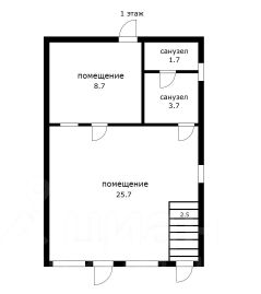 Планировка: 1 этаж - свободная планировка (open space), 2 этаж - кабинетная система. Санузел на каждом уровне.