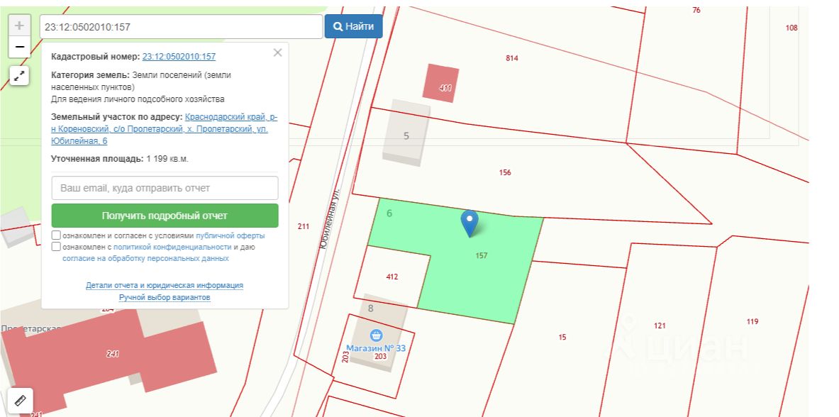Один объект продажи, в состав которого входит: Земельный участок, категория земель: земли населенных пунктов, вид разрешенного использования: для ведения личного подсобного хозяйства, площадью 1 199 кв.м., с кадастровым номером: 23:12:0502010:157, находящийся по адресу: Российская Федерация, Краснодарский край, Кореновский район, х. Пролетарский, ул. Юбилейная, 6.