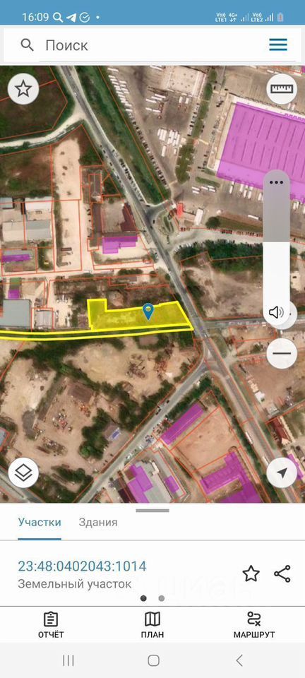 Земельный участок с бетонной площадкой, площадь 3264 кв, м, расположен вдоль подъездного железнодорожного пути(раньше использовался, как разгрузочная площадка), длина участка воль ж/д пути 123 м., ширина участка по улице 32 м, выход на асфальтированную дорогоу — ул. Мевское шоссе, выезд из города на развязку Краснодар-Новороссийск- Крым. Вид разрешенного использования склады.