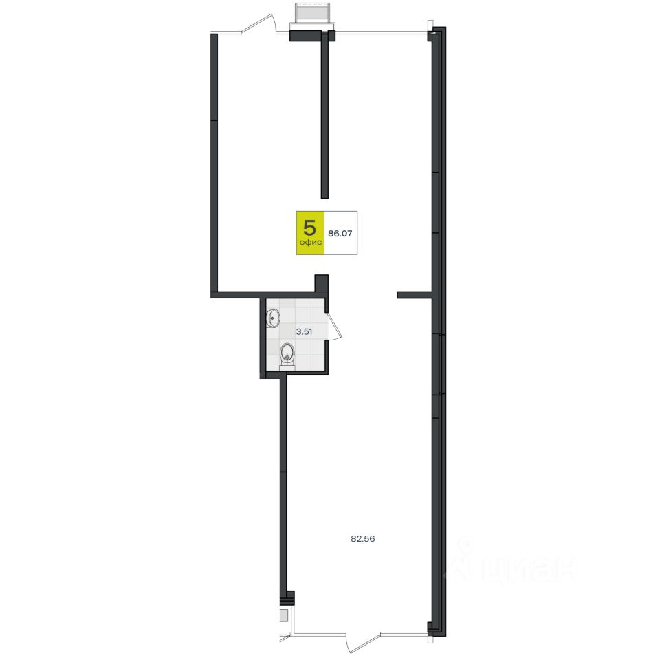 Коммерческое помещение площадью 86.07 находится на 1-м этаже нового жилого снеднеэтажного дома. Помещение в предчистовой отделке, есть возможность сделать ремонт под свой бизнес-продукт или услугу, планировка свободная. Все коммуникации центральные, высота потолков 3, 64 м.