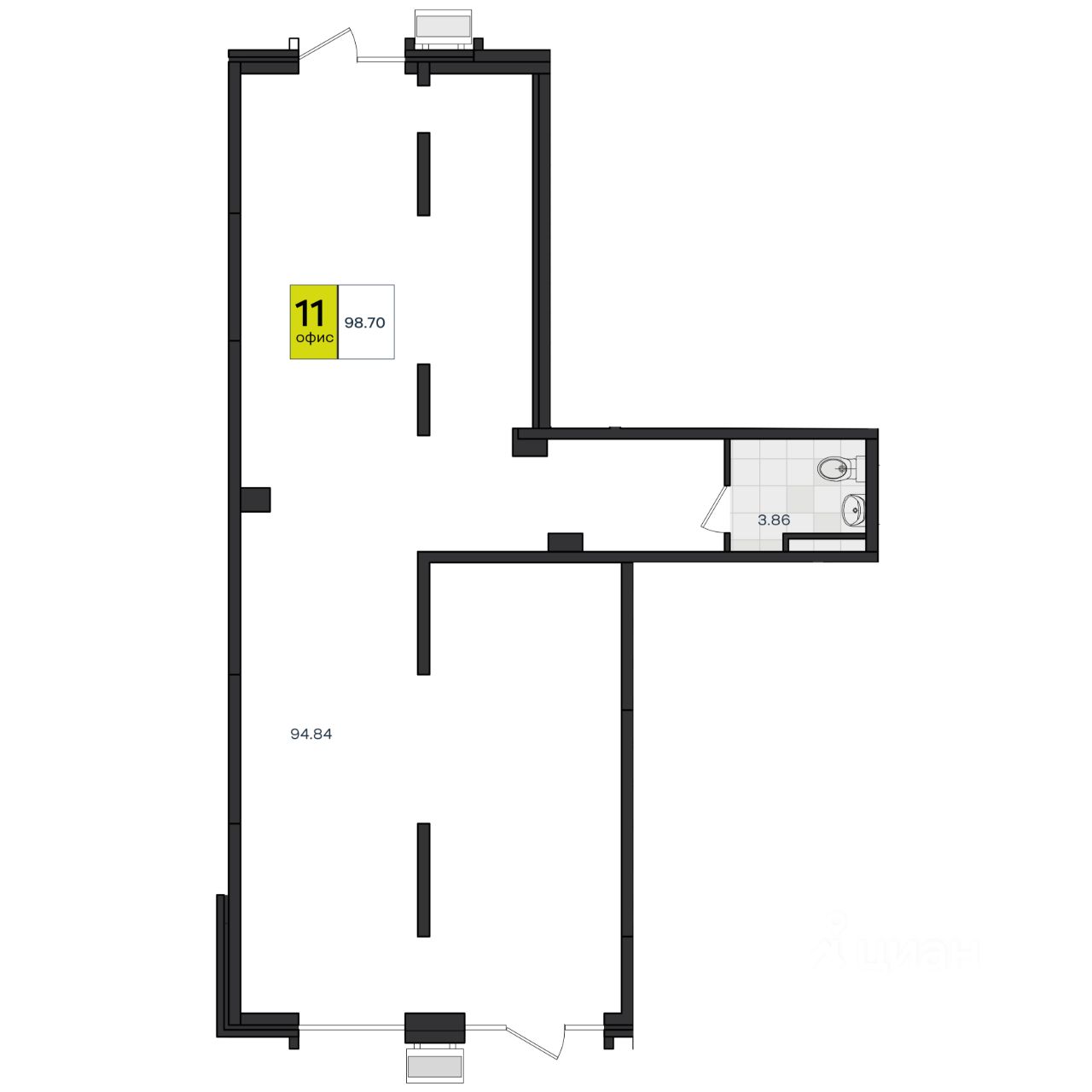 Помещение свободного назначения площадью 98.70 находится на 1-м этаже нового жилого среднеэтажного дома. Предчистовая отделка позволяет сделать ремонт по своему усмотрению, планировка свободная. Все коммуникации центральные, высота потолков 3, 64 м. Фасад из керамического кирпича с декоративными вставками и витражным остеклением.