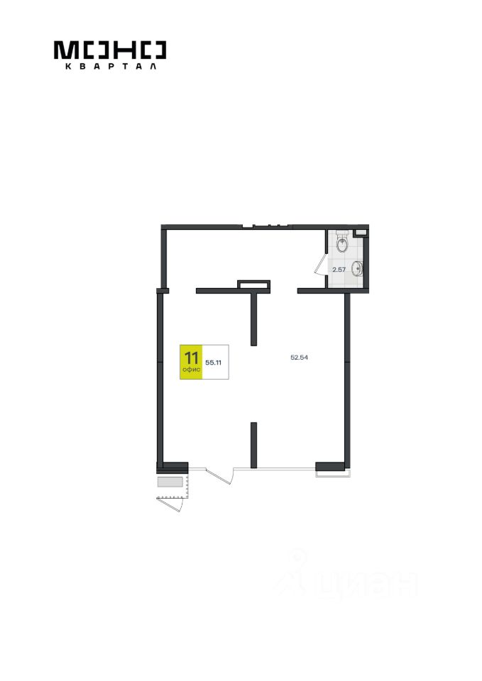 Коммерческое помещение площадью 55.07 находится на 1-м этаже нового жилого снеднеэтажного дома. Помещение в предчистовой отделке, есть возможность сделать ремонт под свой бизнес-продукт или услугу, планировка свободная. Все коммуникации центральные, высота потолков 3, 64 м.