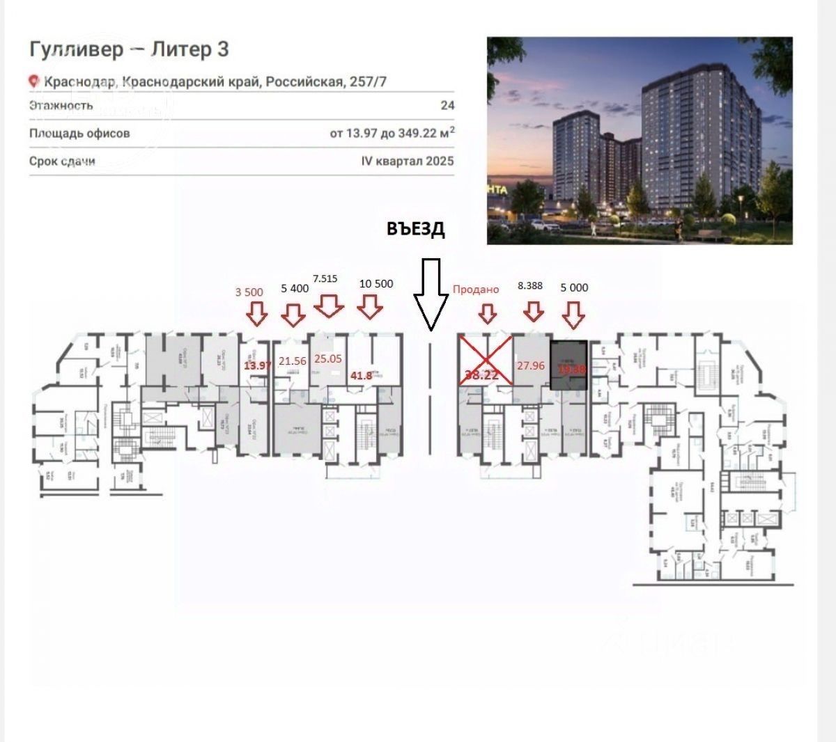 Помещение расположено в интенсивной пешеходной зоне на въезде в ЖК