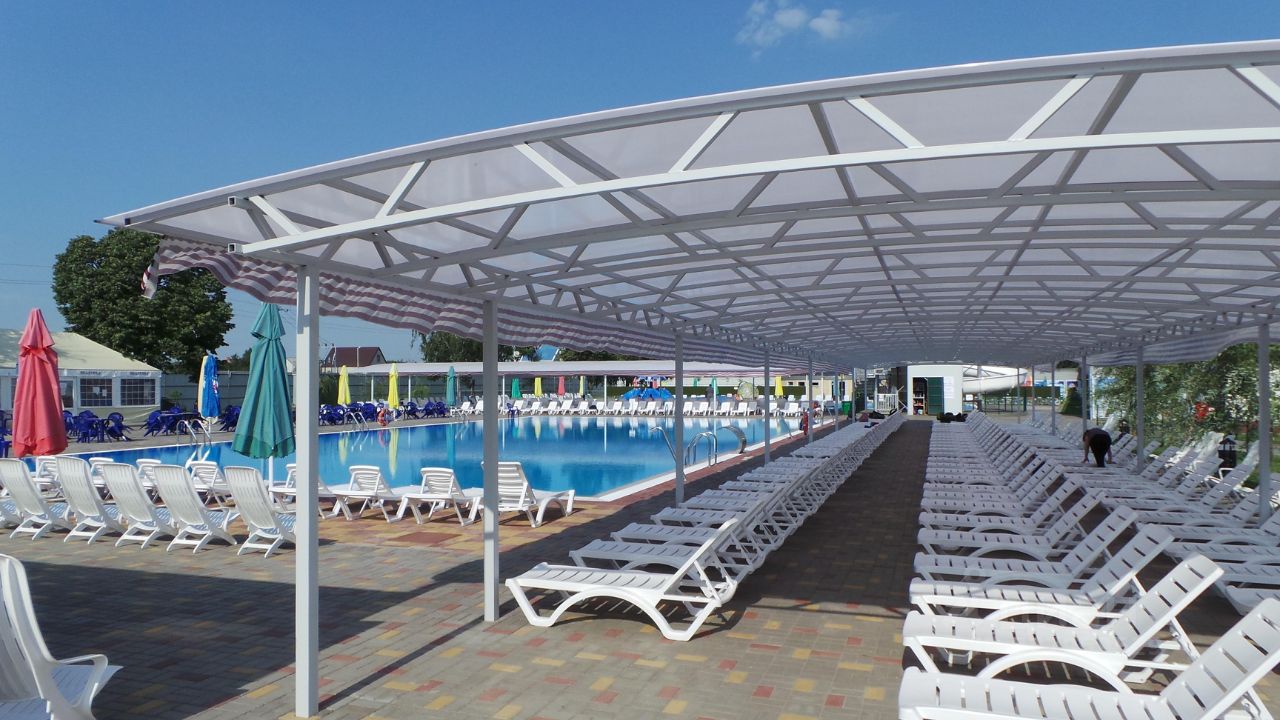 АКВАПАРК — Детский бассейн с горками, взрослый с горками-камикадзе (10 м и 12 м), бассейн с противотоком и массажными водопадами, 5 VIP-бассейнов.