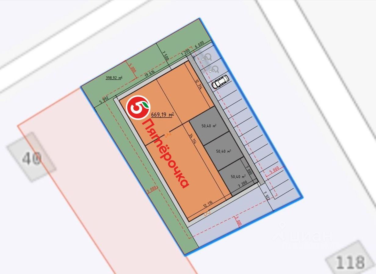 Участок полностью переведен под коммерческое назначение — идеально подходит для строительства магазина или торгового центра.