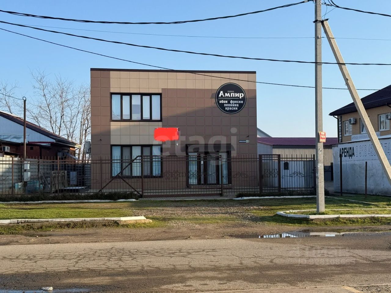Стихийная парковка по фасаду, огороженная территория