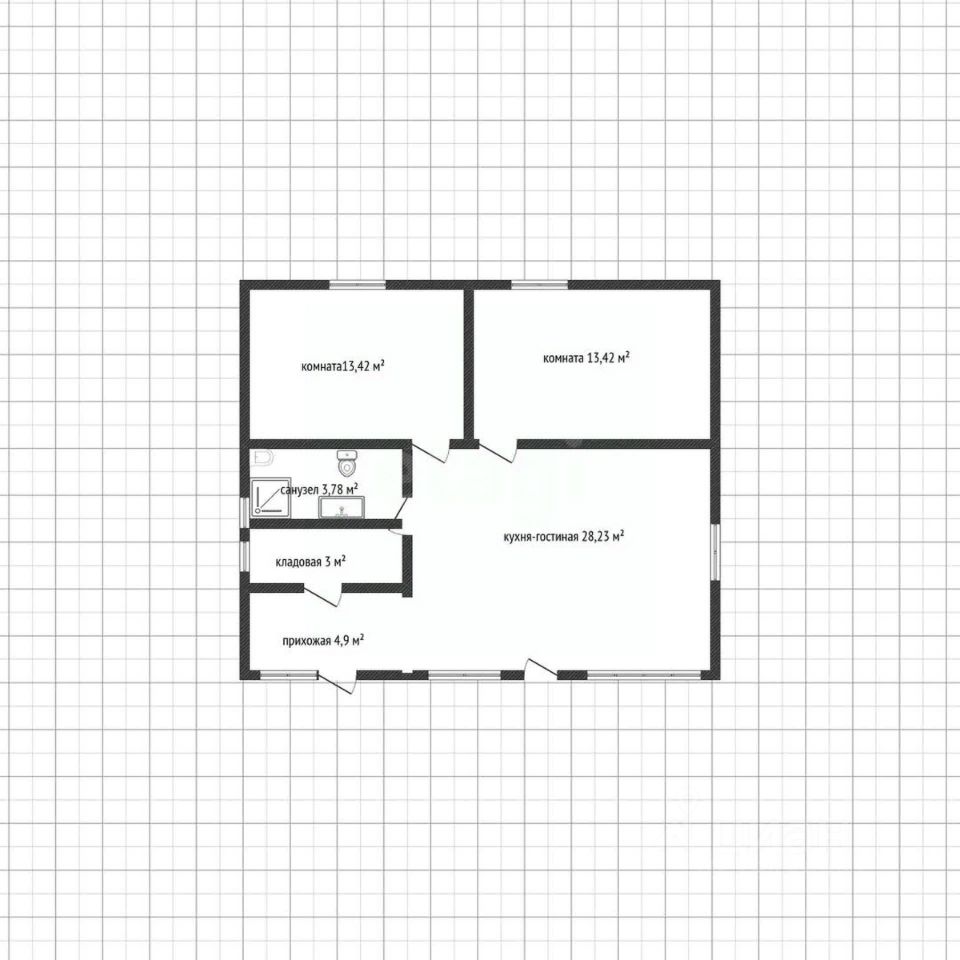 Общая площадь дома (включая террасу) 86 кв. м.