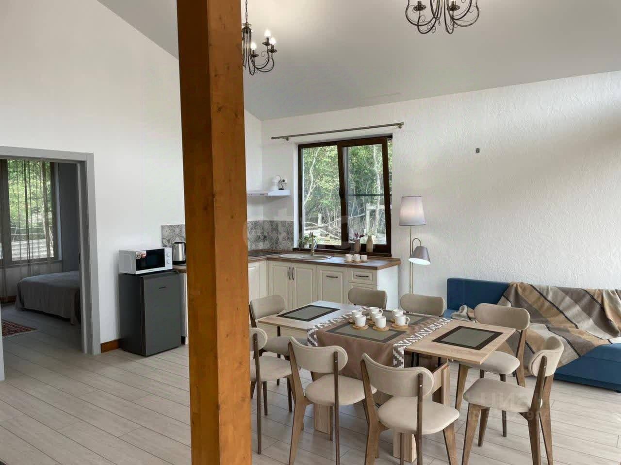 Комфортный, энергоэффективный одноэтажный коттедж с панорамным остеклением располагается в Краснодарском крае у самого подножия Кавказских гор в непосредственной близости от Гуамского ущелья (5 минут на машине) и других известных туристических маршрутов России на участке 7,6 соток. Вокруг горы, свежий воздух и прекрасная нетронутая природа.