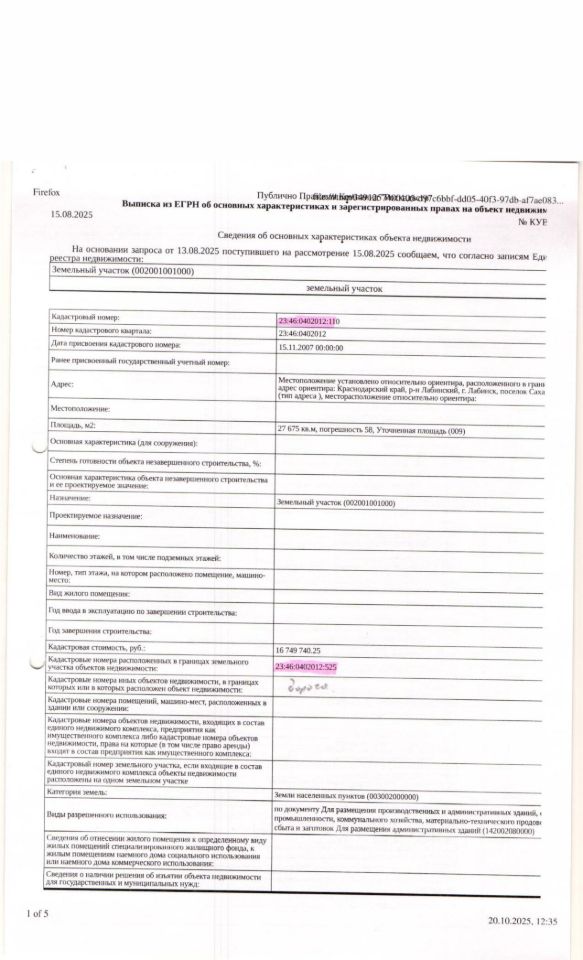 Д-к: ООО "Анте" Земельный участок (для размещения производственных и административных зданий, строений, сооружений), площадь 27 675 кв.м., кадастровый номер 23:46:0402012:110. Нежилое сооружение - автодорога, протяженность 27 675 м., кадастровый номер 23:46:0402012:525. Адрес: Краснодарский край, г. Лабинск, поселок сахарного завода. Начальная цена 30 921 135,98 руб. (начальная цена указана с учетом НДС 22%), задаток 4 638 171 руб., шаг аукциона 309 212 руб., ув. 308
