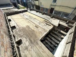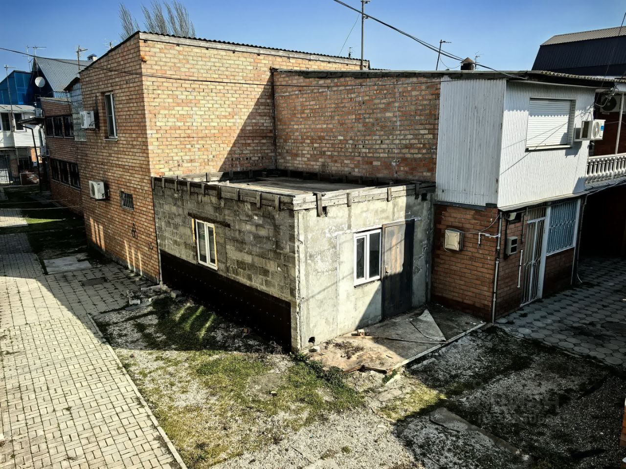 На данный момент после приведения документации к нормам организации были убраны лестница ведущая на второй этаж и сам второй этаж, на момент покупки есть первый этаж с окнами и дверью, в помещении черновая, бетонная заливка и несущие балки потолка первого этажа и пола второго этажа установленные в разных уровнях для уменьшения шума между этажами. Из коммуникаций подведены электричество и вода. Для доступа на второй этаж сделана качественная, широкая лестница из металлической основы и деревянных ступеней.