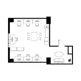 - Лаунж-зона внутри атриума На 3 этаже предусмотрено общественное пространство для отдыха резидентов, расположенное внутри открытого атриума.