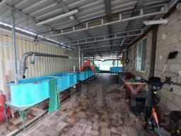 Круглогодичный цех (300 кв.м.): Оборудован 6 бассейнами по 25 кубов и дополнительными малыми бассейнами для различных стадий выращивания.